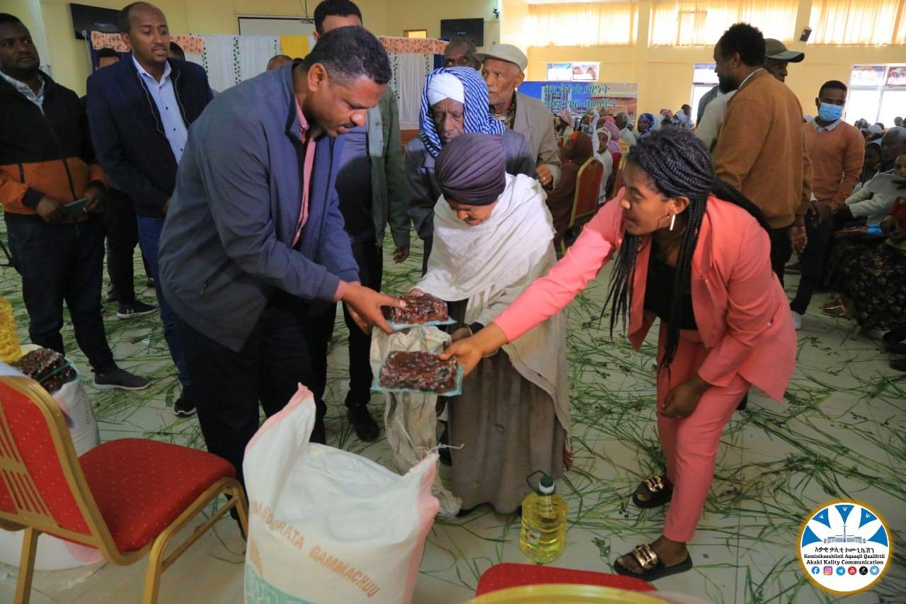 በአቃቂ ቃሊቲ ክፍለ ከተማ አስተዳደር ስር የሚገኙ አመራሮች “መሪነት እና በጎ-ፍቃደኝነት ለማህበራዊ መስተጋብር” በሚል መሪ ቃል ለ240 አቅመ ደካማ የህብረተሰብ ክፍሎች የማዕድ ማጋራት መረሃ-ግብር አካሄድ።