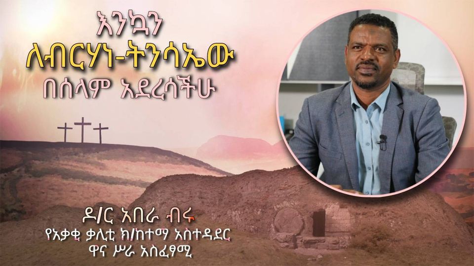 ለመላው የክርስትና እምነት ተከታዮች እንኳን ለትንሳኤ /ፋሲካ/ በዓል በሰላም አደረሳችሁ እያልኩ በዓሉን ስናከብር በአብሮነት፣ ያለንን በጋራ በመቋደስ በፍፁም ኢትዮጵያዊነት ስሜት ሆነን እንድናከብር መልዕክቴን እያስተላለፍኩ፤ በዓሉ የሰላም፣ የጤና፣ የብልፅግና እና በረከት የምታተርፉበት ይሆንላችሁ ዘንድ እመኛለሁ።”